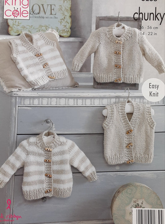 Striped & Plain Cardigans & Waistcoats Knitted in BV Baby Chunky