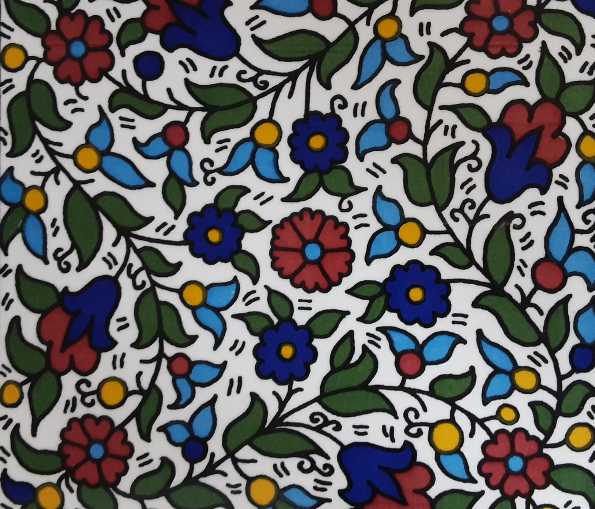 Made by Hebron Glass which is owned by the Natsheh family. They has been making hand-blown glass for over 5 generations, spanning 200 years. In 1962 they opened a ceramics factory that was temporarily closed after the first intifada and re-opened 10 years ago. They represent a collective of artisans making traditional Palestinian ceramics