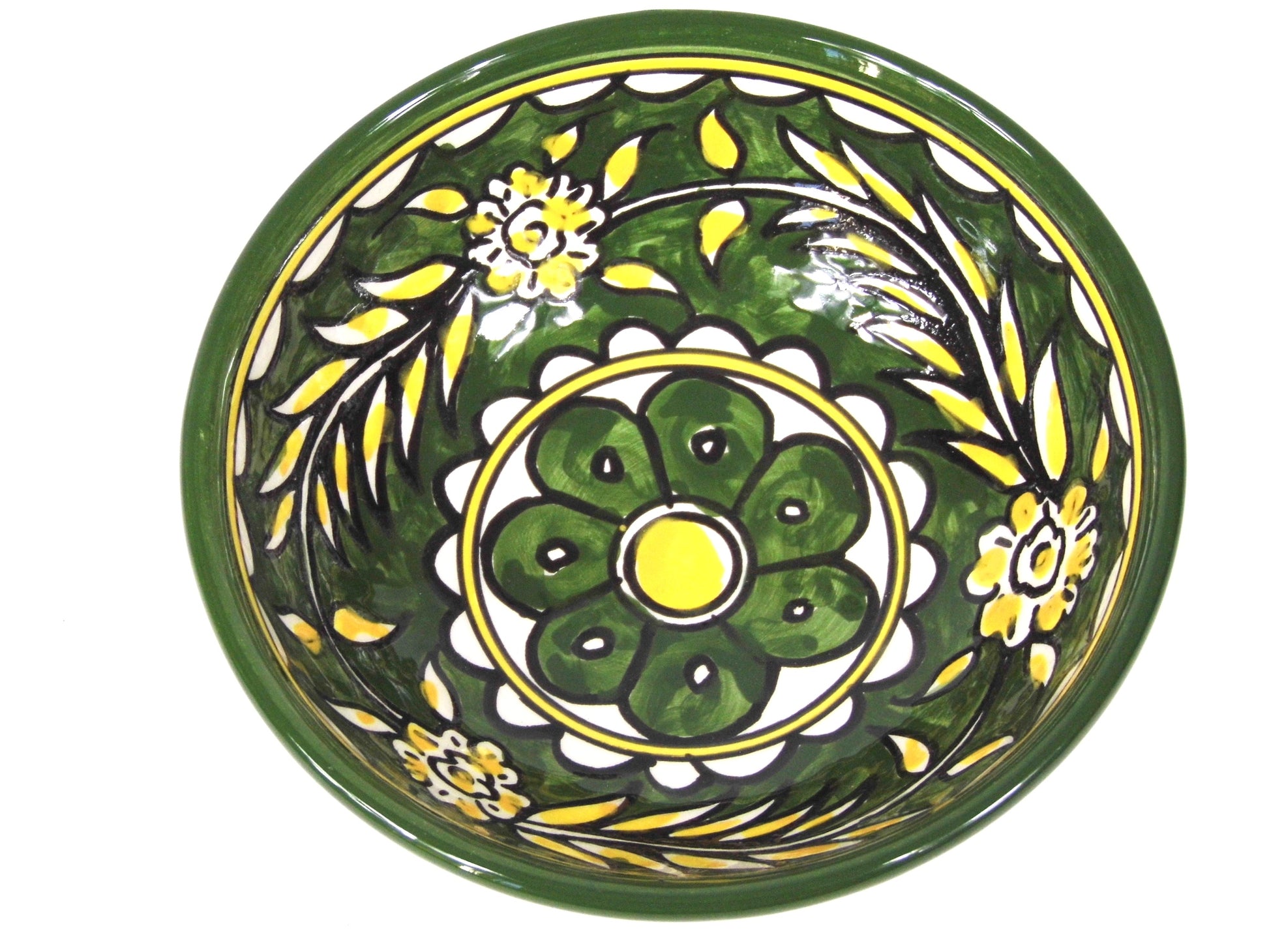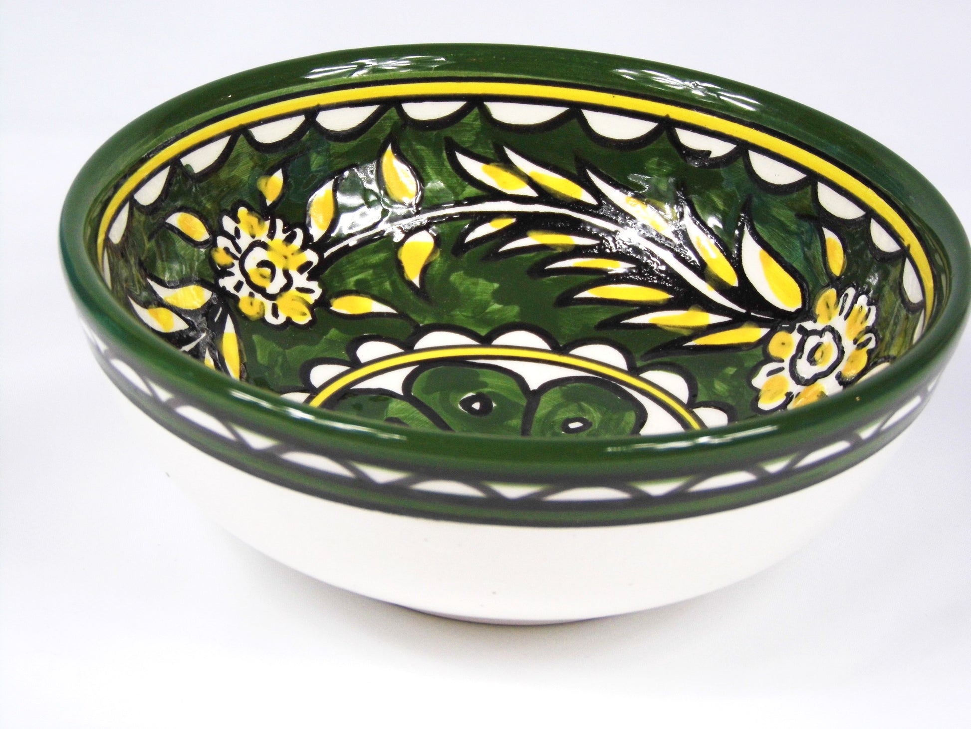 Handmade Ceramic Deep Bowl 15cm- Green & Yellow