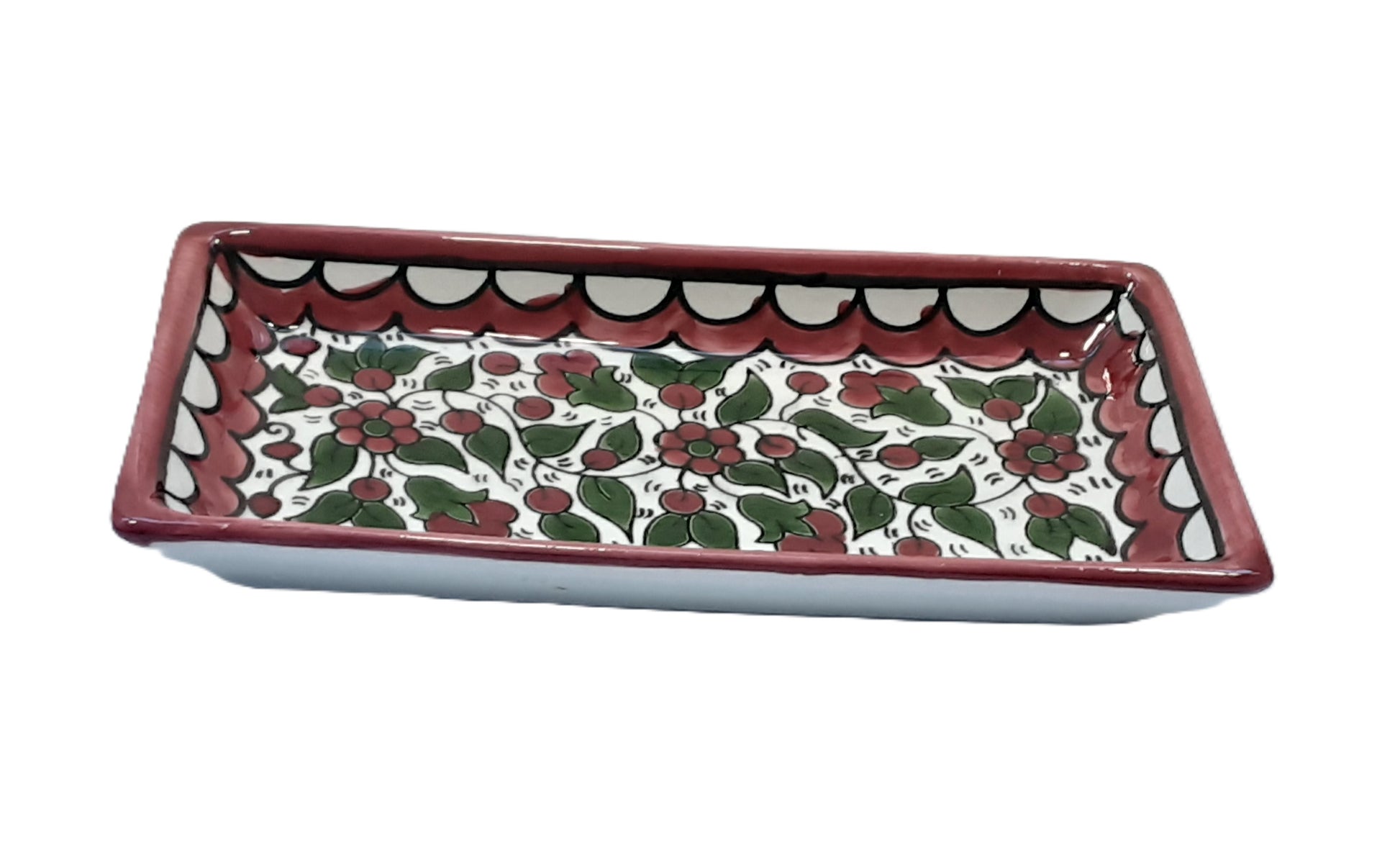 This generous serving dishes bring Palestinian heritage to the center of your table. The rectangular dish suits finger foods, savory assortments, or baked goods.