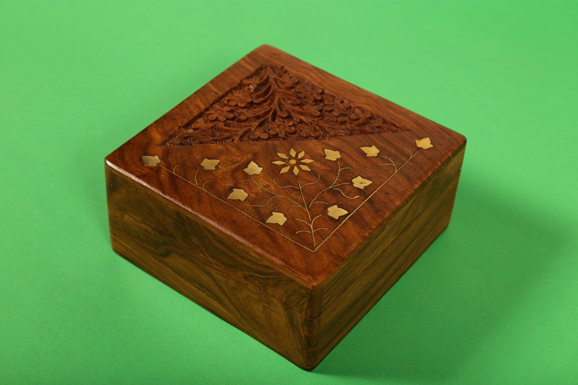 Moroccan walnut boxes are handcrafted decorative items often featuring inlaid designs made from various woods like thuya (a fragrant cedar from the root of the thuya tree) which is often combined with other woods like walnut for the trim or details . These boxes are known for intricate geometric patterns, a glossy french polish finish , and are sometimes designed as "puzzle boxes" that are difficult to open. They serve as storage for jewelry, keepsakes, or other small items and are a reflection of traditional Moroccan craftsmanship.