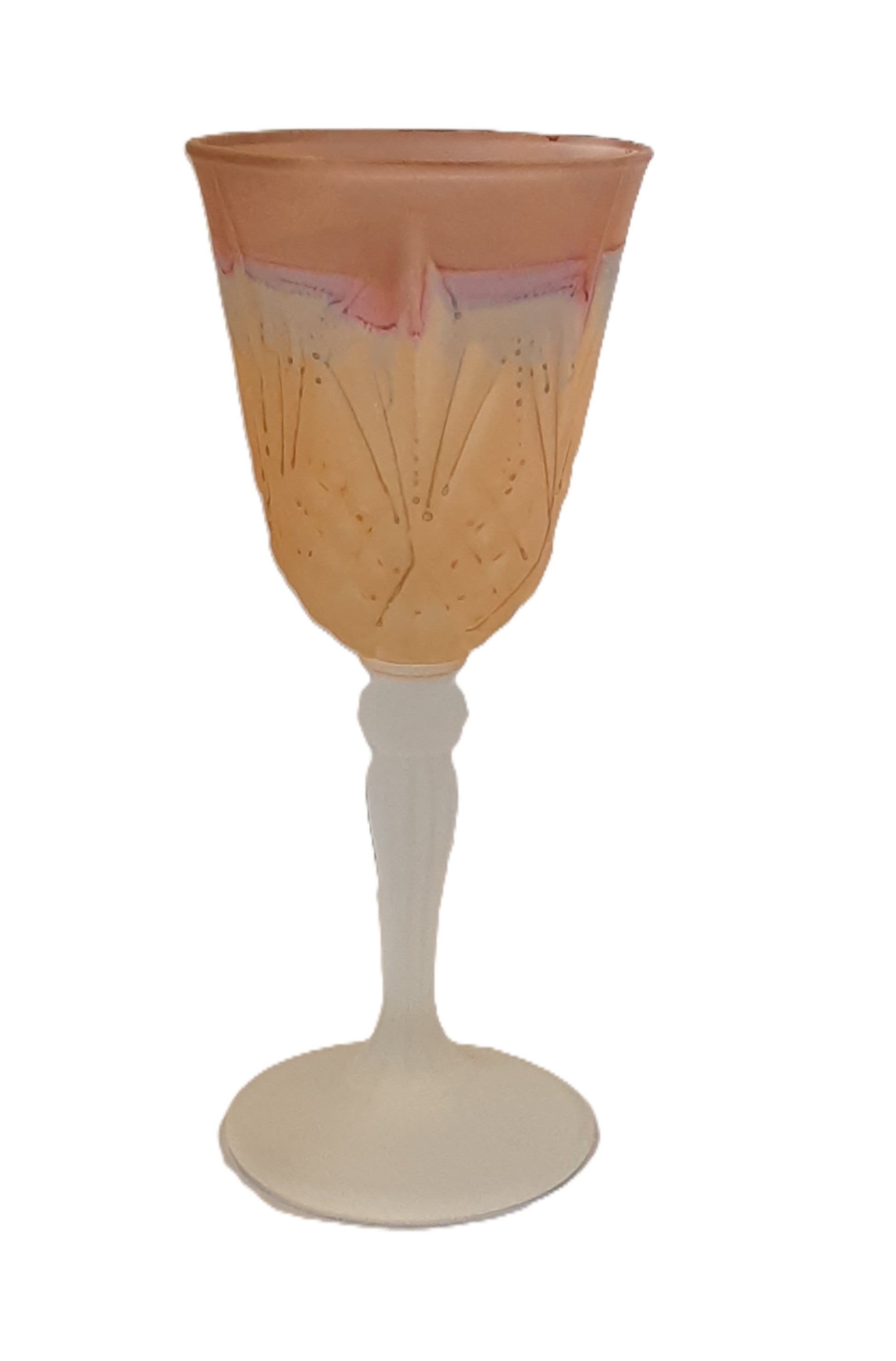 Some of Hebron's most popular glasses are what appear to be frosted and painted glasses. The glasses themselves are clear wine, water, and pilsner glasses purchased from manufacturers in Europe and brought to Hebron. They are hand-painted by Abed Abu ( Ceramics and Glass Factory in Hebron). He works his magic, turning these clear glasses into works of art, each one with a unique frosted and painted look.